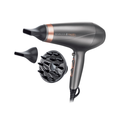 Мощность фена Remington AC8820 - 2200 Вт, выполнен в трендовых оттенках серого и розового золота, обладает керамической решеткой для быстрого и равномерного высвобождения тепла и обладает ионным генератором, который производит на 90%* больше ионов, которые запечатывают влагу в волосах для блеска, без спутывания. Фен обладает долговечным AC мотором для быстрой и эффективной сушки, а также 5 настройками для персонализированного стайлинга.