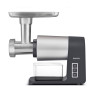 Комплект аксессуаров: 2 диска с отверстиями 5 и 7 мм, Диск треугольный, Лоток для фарша, Насадка для кеббе, Насадка для колбас, Толкатель