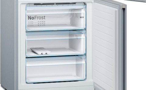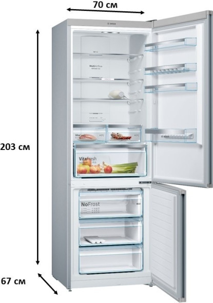 Класс энергопотребления: A++. Потребление электроэнергии: 303 кВтч/год. Общий объем: 435 л. Уровень шума: 40 дБ(A) re 1 pW. Цвет поверхности двери: цвета нержавеющей стали. Встроенная вертикальная ручка дверцы. Освещение LED. NoFrost. Раздельная электронная регулировка температуры, светодиодный индикатор. Раздельная электронная регулировка температуры. Режим суперохлаждения. Функция суперзамораживания с автоматикой замораживания. Система акустической и оптической сигнализации для холодильного и морозильного отделения. Система акустической сигнализации. Холодильное отделение: 330 л. Система Multi Airflow. AirFreshFilter. Полки из ударопрочного стекла: 5 шт., 4 из них переставляемые по высоте. FlexShelf. 1 большие дверные полки, 3 маленькие дверные полки. Обьем возле 0°C секции: 28 л. 1 VitaFresh ◄0 ° C► выдвижной ящик - Рыба и мясо остаются свежими дольше. 1 VitaFresh выдвижной ящик с контролем влажности - фрукты и овощи сохраняют витамины и остаются свежими дольше. Морозильное отделение: 105л. Мощность замораживания 15 кг/ 24 ч.. Длительность хранения при отключении электроэнергии: 20 ч. 3 прозрачных выдвижных бокса. Размеры прибора (ВхШхГ): 203 x 70 x 66 см