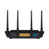 RT-AX58U – это двухдиапазонный беспроводной маршрутизатор с антенной конфигурацией 2х2. Используя широкие каналы связи (180 МГц) и квадратурную модуляцию 1024-QAM, он способен обеспечить общую скорость передачи данных по сети Wi-Fi на уровне около 3000 Мбит/с: 574 Мбит/с в диапазоне 2,4 ГГц и 2402 Мбит/с в диапазоне 5 ГГц. Таким образом, данная модель в 2,5 раза быстрее, чем двухдиапазонные маршрутизаторы стандарта 802.11ac с аналогичной антенной конфигурацией.