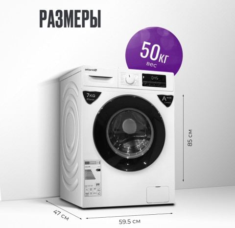 Тип стиральной машины - автомат, Установка - отдельностоящая, Тип загрузки - фронтальная, Управление - электронное, Максимальная загрузка белья - 7 кг, Максимальная скорость отжима 1000 об/мин, Класс энергопотребления - А+++, Сушка - Нет, Дисплей - есть, Ширина - 59.5 см, Глубина - 47.0 см, Высота - 85.0 см, Вес - 53.0 кг, Количество программ - 16, Стирка с паром, Инверторный двигатель - Да, Защита от протечек воды - Нет, Уровень шума (стирка / отжим) - 62 дБ/ 76 дБ, Страна производитель - Китай