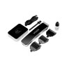 В комплекте к триммеру, помимо базы для хранения и зарядки, идёт USB-шнур, 4 насадки-гребни разной длины, щёточка для чистки лезвий и бутылочка с маслом. С помощью аксессуаров вы можете ухаживать за щетиной и поддерживать триммер в исправном состоянии.